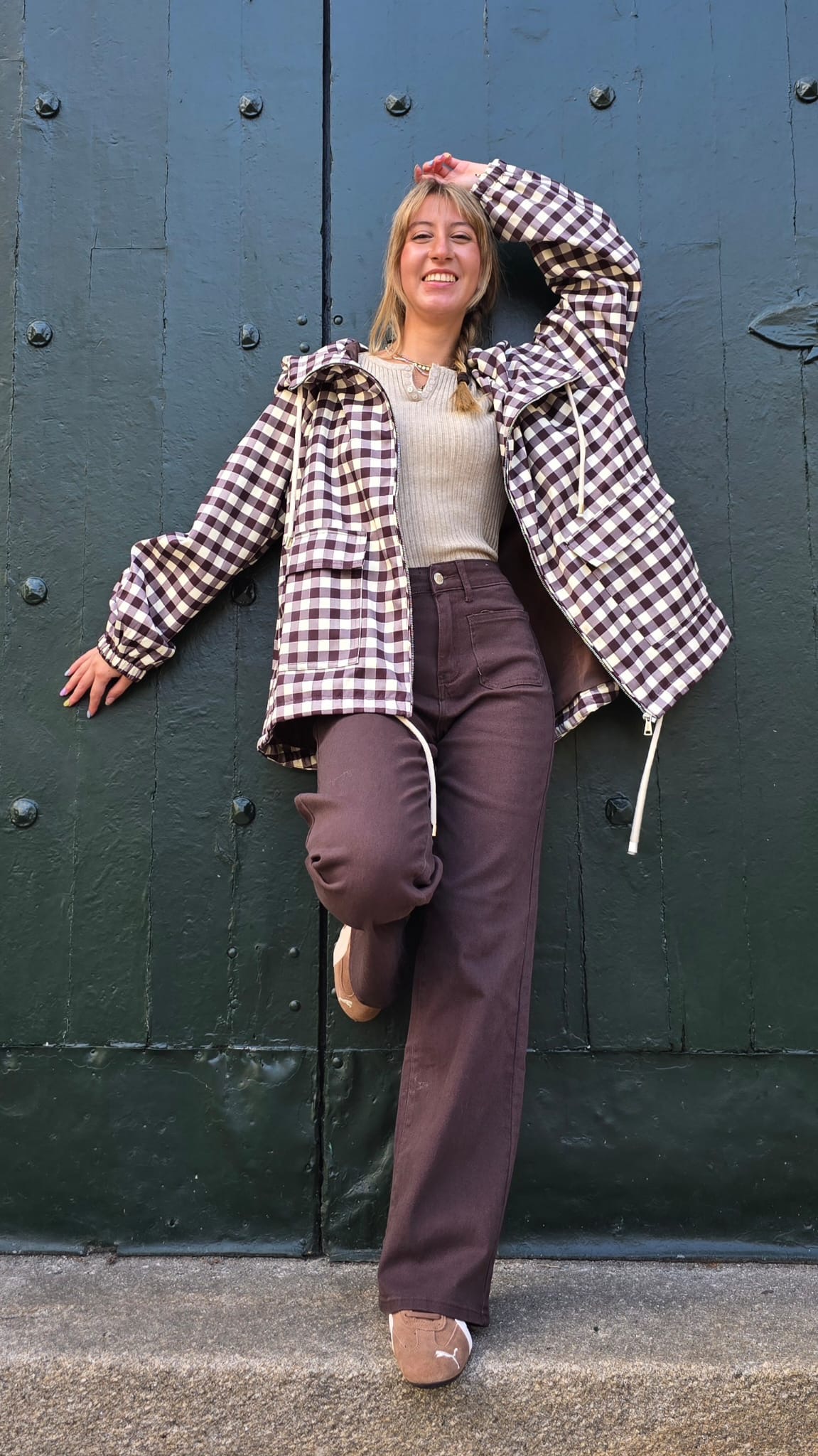 Pantalón vaquero color chocolate . Tallas : S-M-L-XL . Medidas : Talla S cintura 62 cm largo 103 cm . Talla M cintura 66 cm largo 104 cm . Talla L cintura 70 cm largo 105 cm . Talla XL cintura 74 cm largo 106 cm . Talla XXL cintura 78 cm largo 107 cm .Composición: 70 % algodón 25 % poliéster 5% elástica.