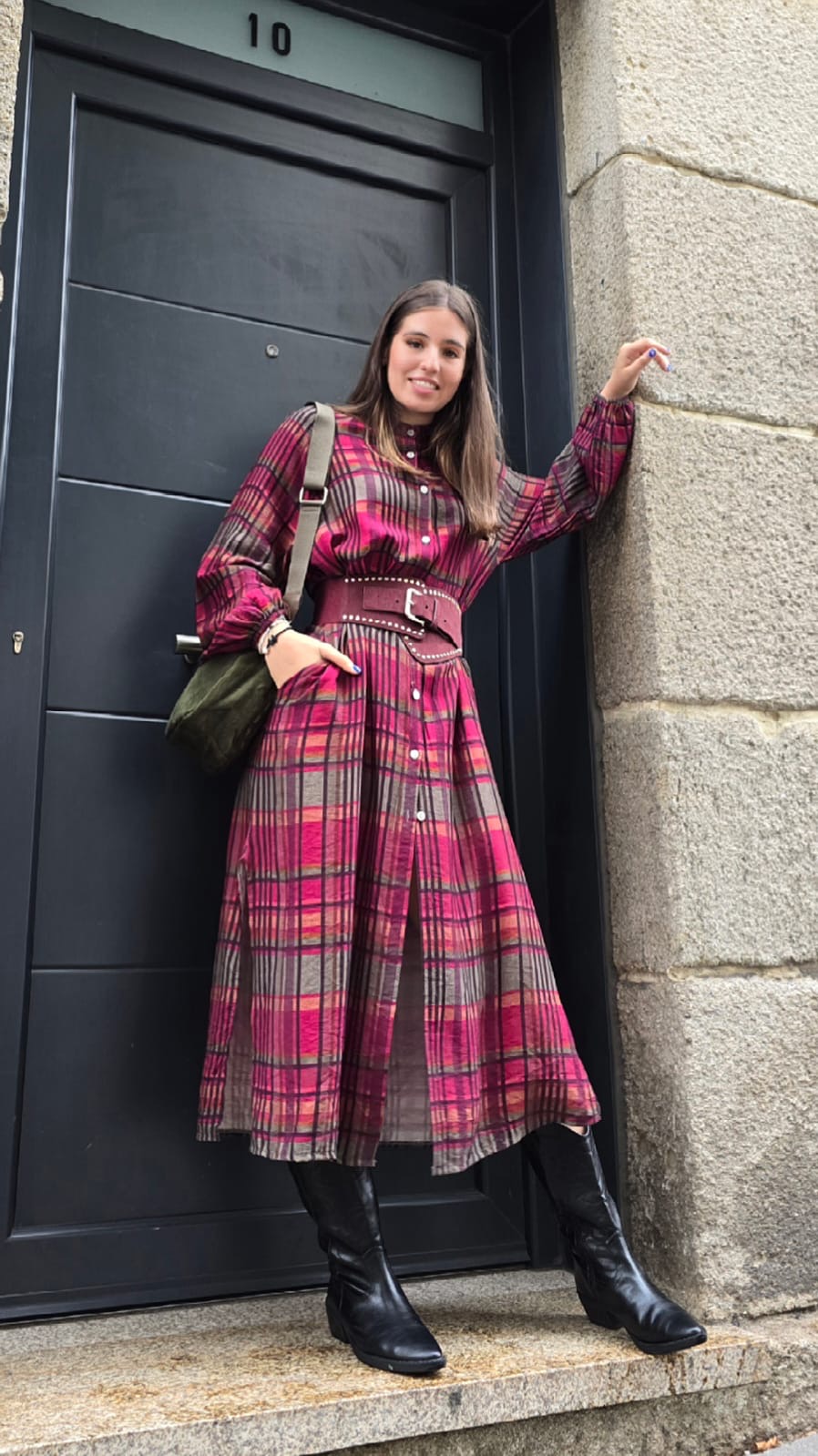 Vestido de cuadros. Talla única . Medidas : sisa a sisa 56 cm largo 122 cm .